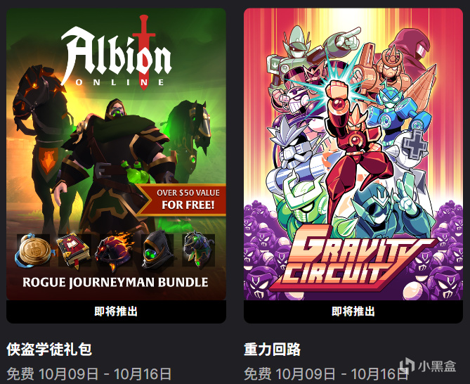 下一周赠送的免费游戏为《侠盗学徒礼包》和《重力回路》,领取时间10月09日~10月16日