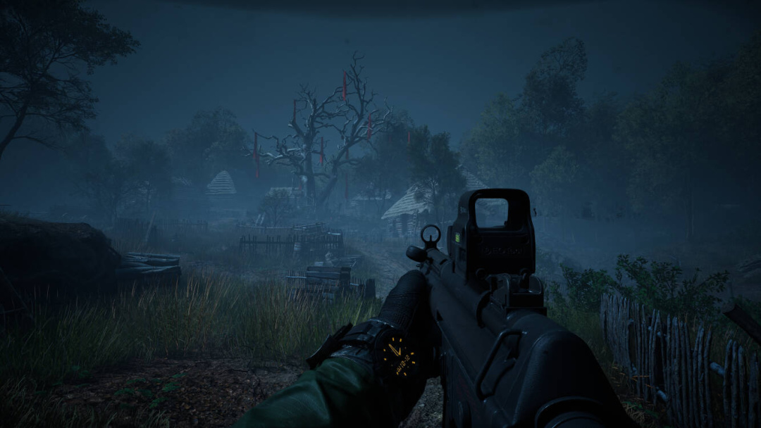 而环境塑造部分更是如此。随风而动的整片稻草,踩过会留下脚印的泥地、阴暗潮湿的青苔、草地燃烧火焰、直升机降临时候被大风吹低的树林......这些都为游戏世界的真实感不断地添砖加瓦。