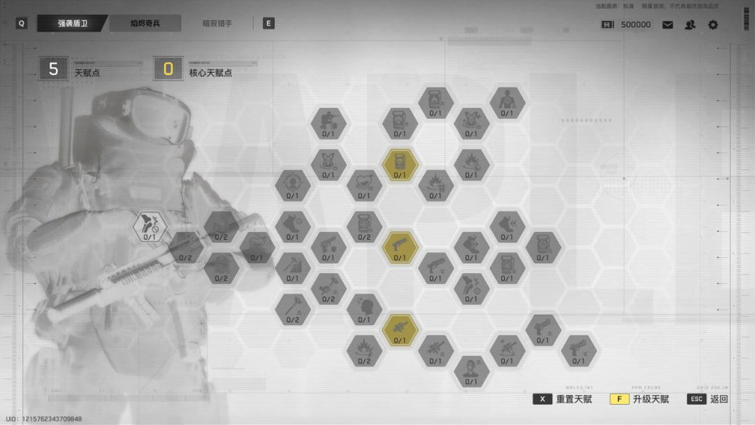 值得一提的是,这里面除了常规数值成长之外,还有很多独特的天赋点,它们甚至可以改变对应的战斗风格。以带盾的“大锤”为例,通过天赋点可构筑出的几种玩法分支:霰弹突入、“爆炸锤”、无后座力炮,玩家可以根据自己的习惯自由构筑,形成自己的玩法流派。