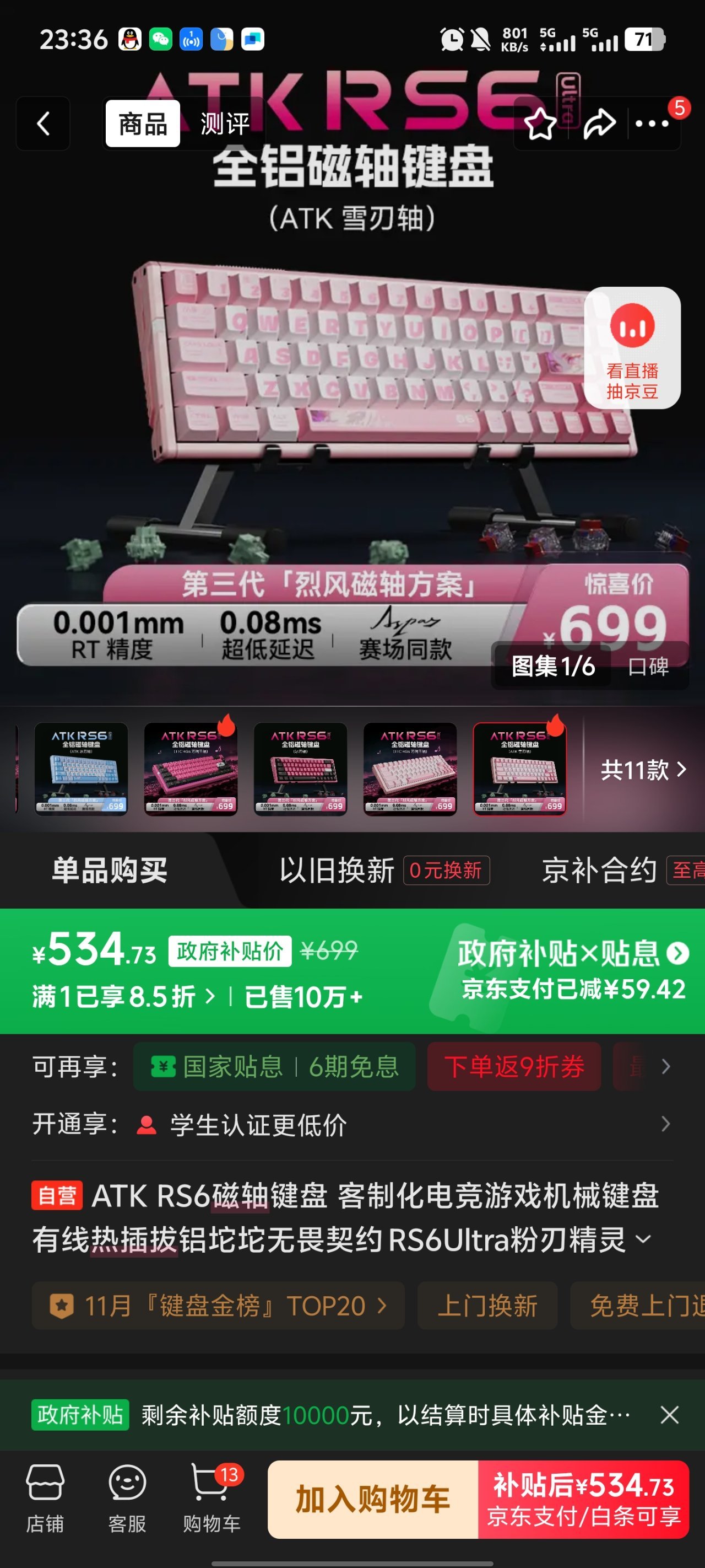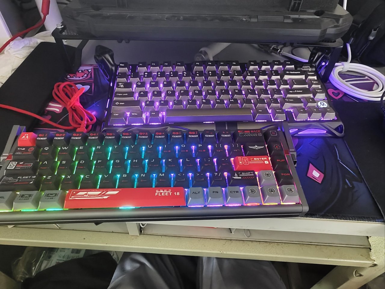 我手上这一把是航母联动版,比标准款要贵,rs6这把键盘我的建议是买标准版就够了,再往上的ultra版本只有轴级的升级,PCB本身是没有提升的,哪怕是我的航母联动版也只是用上了烈刃轴其配置也是一样的