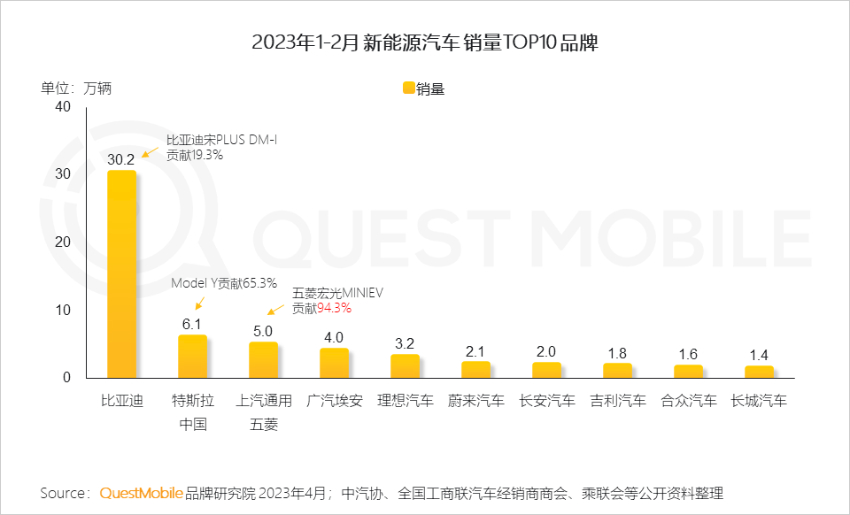 4、今年1-2月,比亚迪销量领跑新能源汽车市场,五菱汽车凭借宏光MINI EV跻身TOP3行列