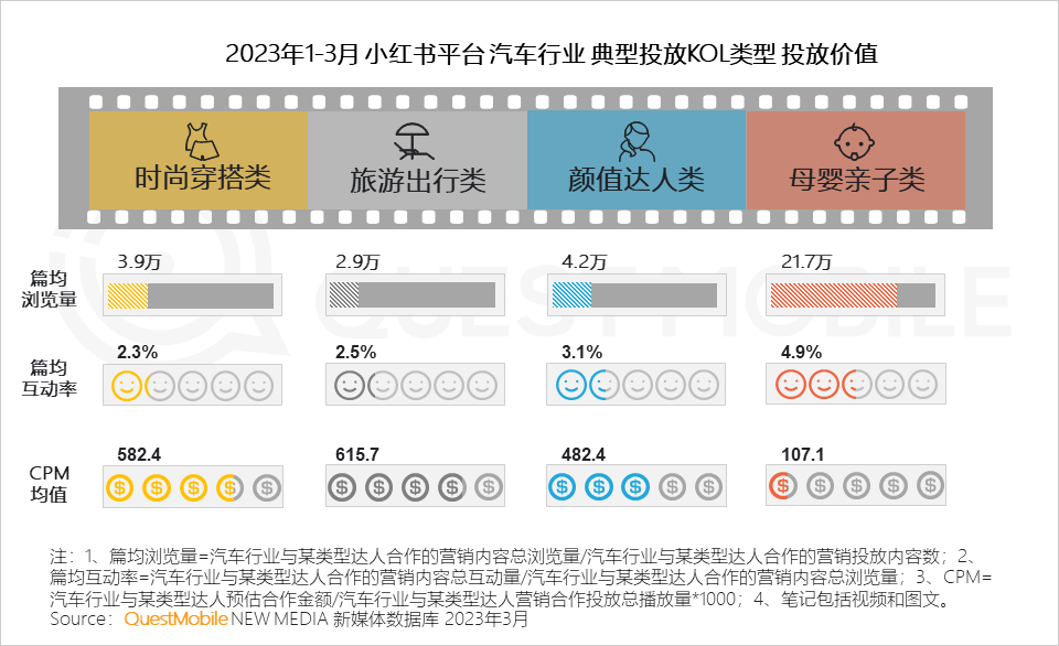 8、与抖音不同的是,车企与母婴类达人的合作,在小红书内的传播势头良好;而时尚穿搭、颜值类达人略显“水土不服”,需要突破过往内容模式,解锁更符合汽车行业的“传播密码”
