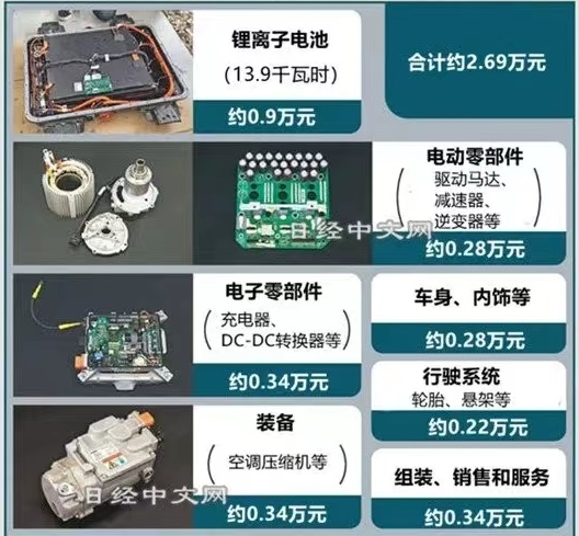 日本名古屋大学有团队对五菱宏光Mini EV 进行了拆解,并针对成本结构以及各项性能之间进行了深入的分析,发现宏光Mini EV直接使用普通的商用零部件,没有采用车规级产品,且多为国产,从而成本极低。