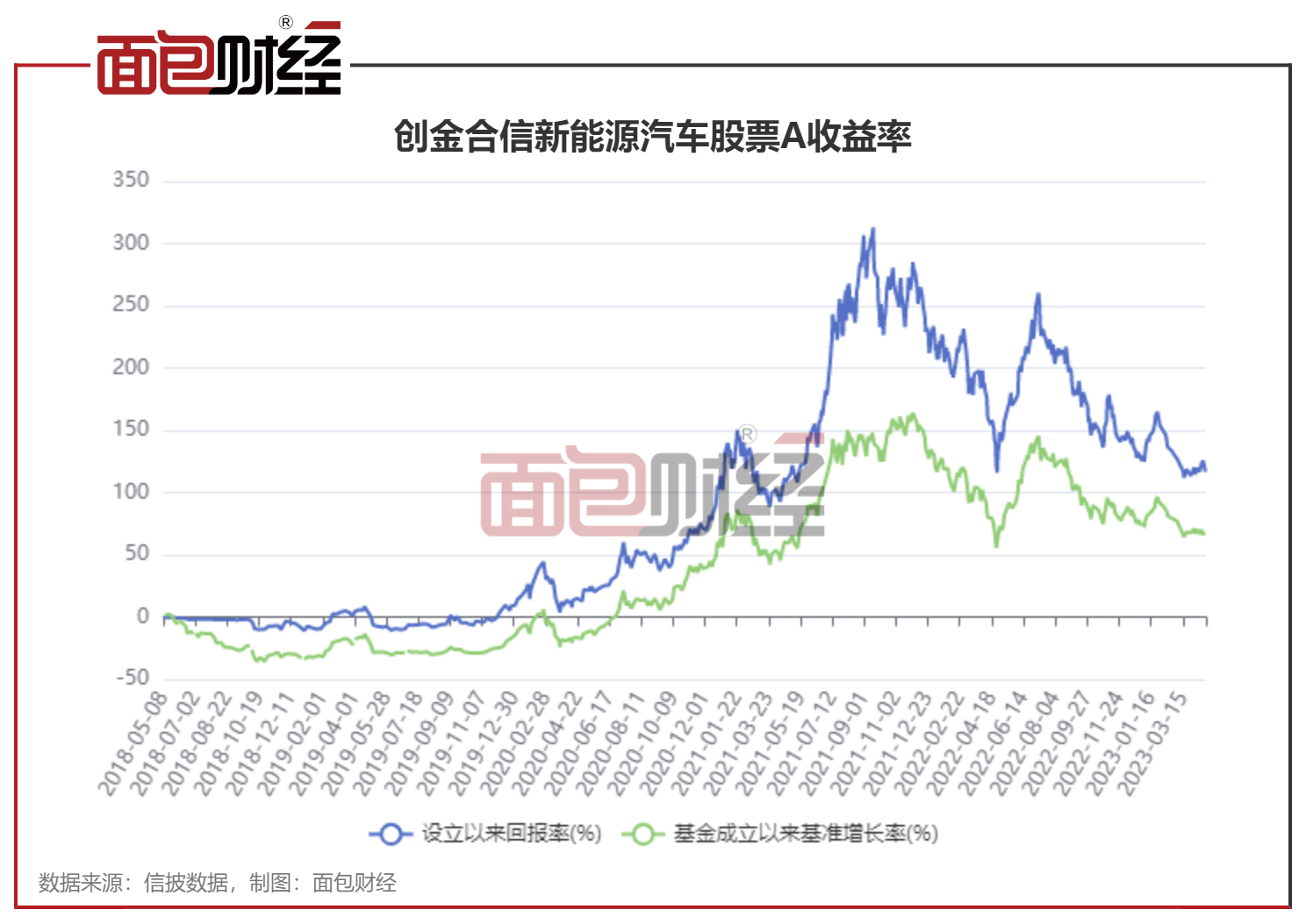 数据显示,创金合信新能源汽车股票在一季度浮亏超1.46亿元。截至2022年末,该基金累计浮亏超过15.66亿元,其中2022年发生浮亏规模较大,约15.93亿元。若加上2023年一季度,该基金累计浮亏超17亿元。