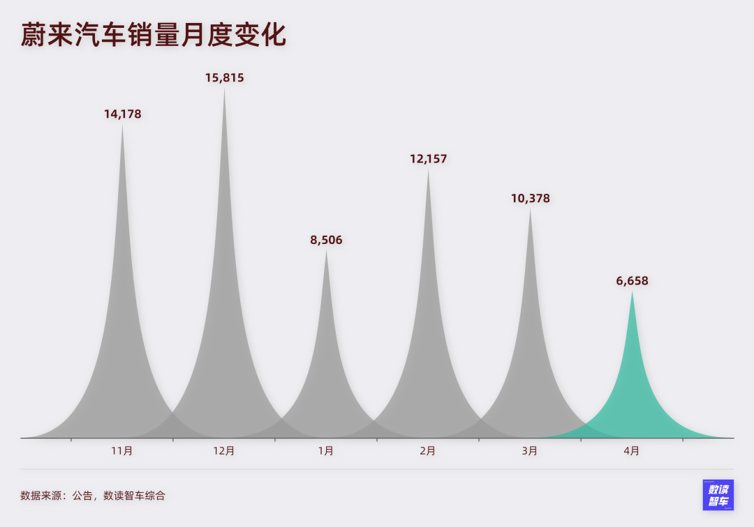 从去年到今年,蔚来的销量一直时好时坏。很难长期持续月销破万。