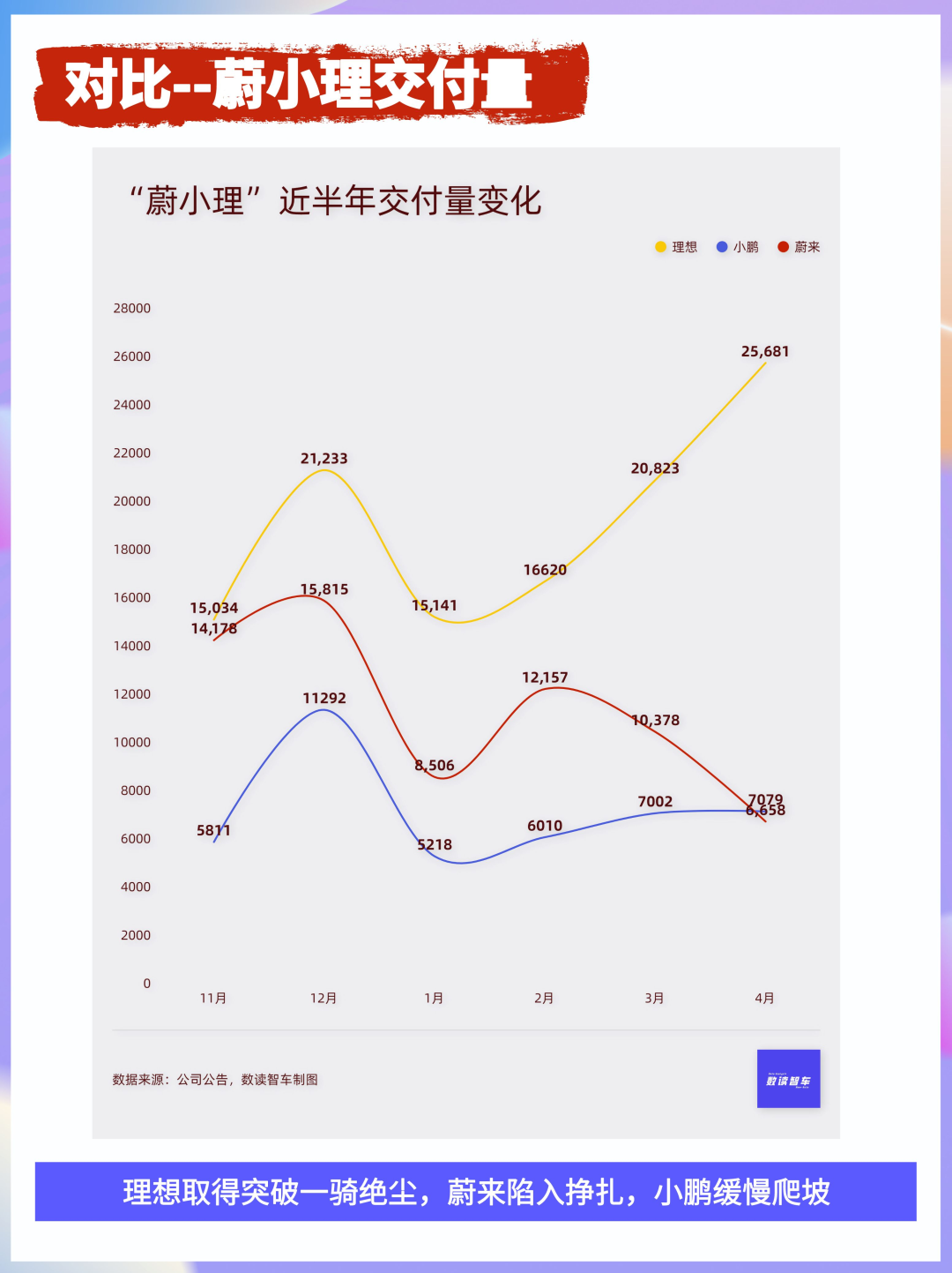 零跑虽然完成度更低,但上升趋势明显,3月调整价格,发布增程款C11后,销量台阶跃升明显。小鹏的形势相对严峻一些,P7i开始交付后,没有显著带动销量,4月交付量只比3月多了77辆。