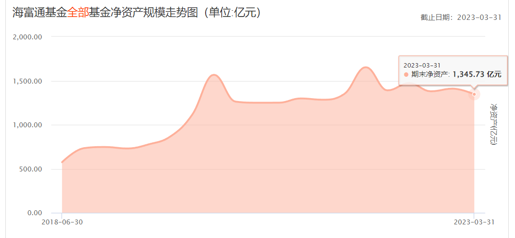 海富通基金管理公司,是一家成立20年的老牌公司,目前资产规模为1345.73亿。这个体量,在老牌公司里面,说实话,不算出众。