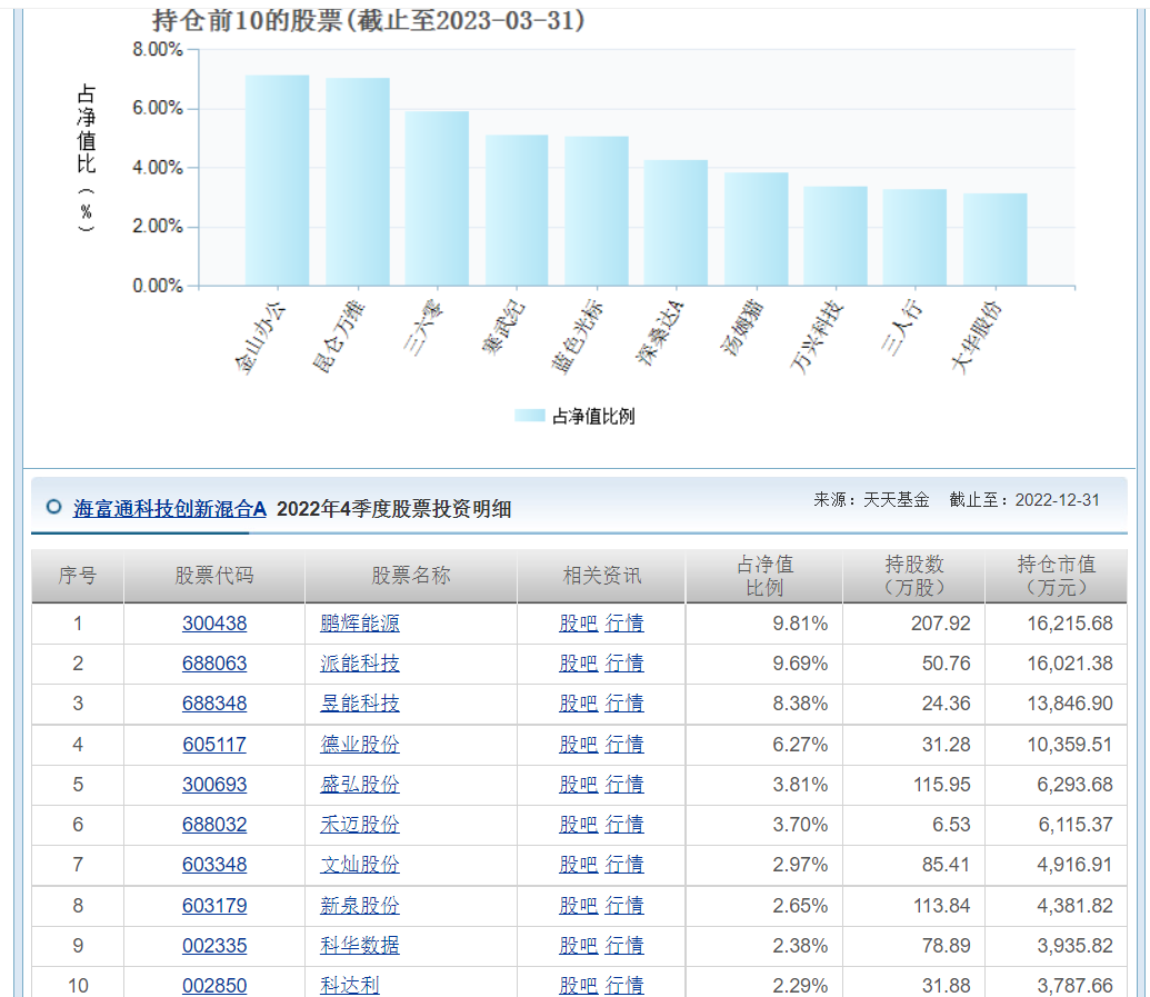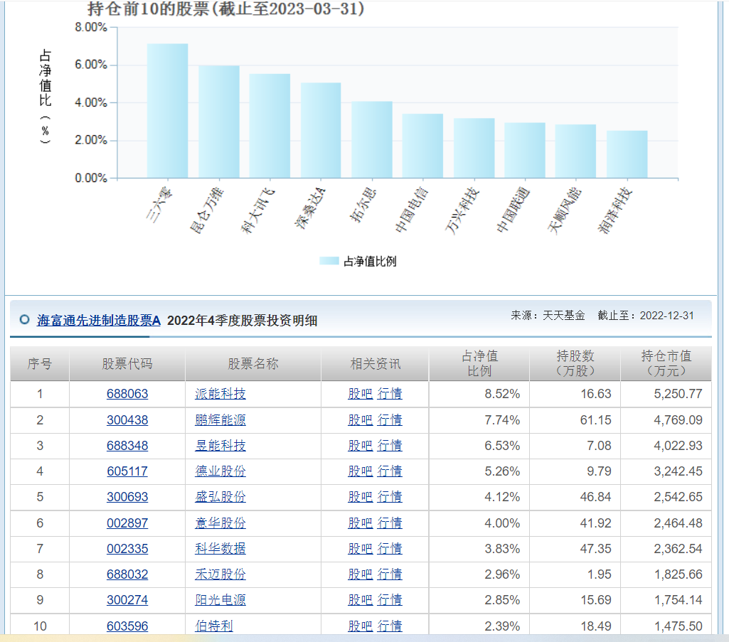 元旦前,海富通先进制造A重仓新能源,其前十持仓股票分别是:派能科技,鹏辉能源、昱能科技、德业股份、盛弘股份、意华股份、科华数据、禾迈股份、阳光电源、伯特利。