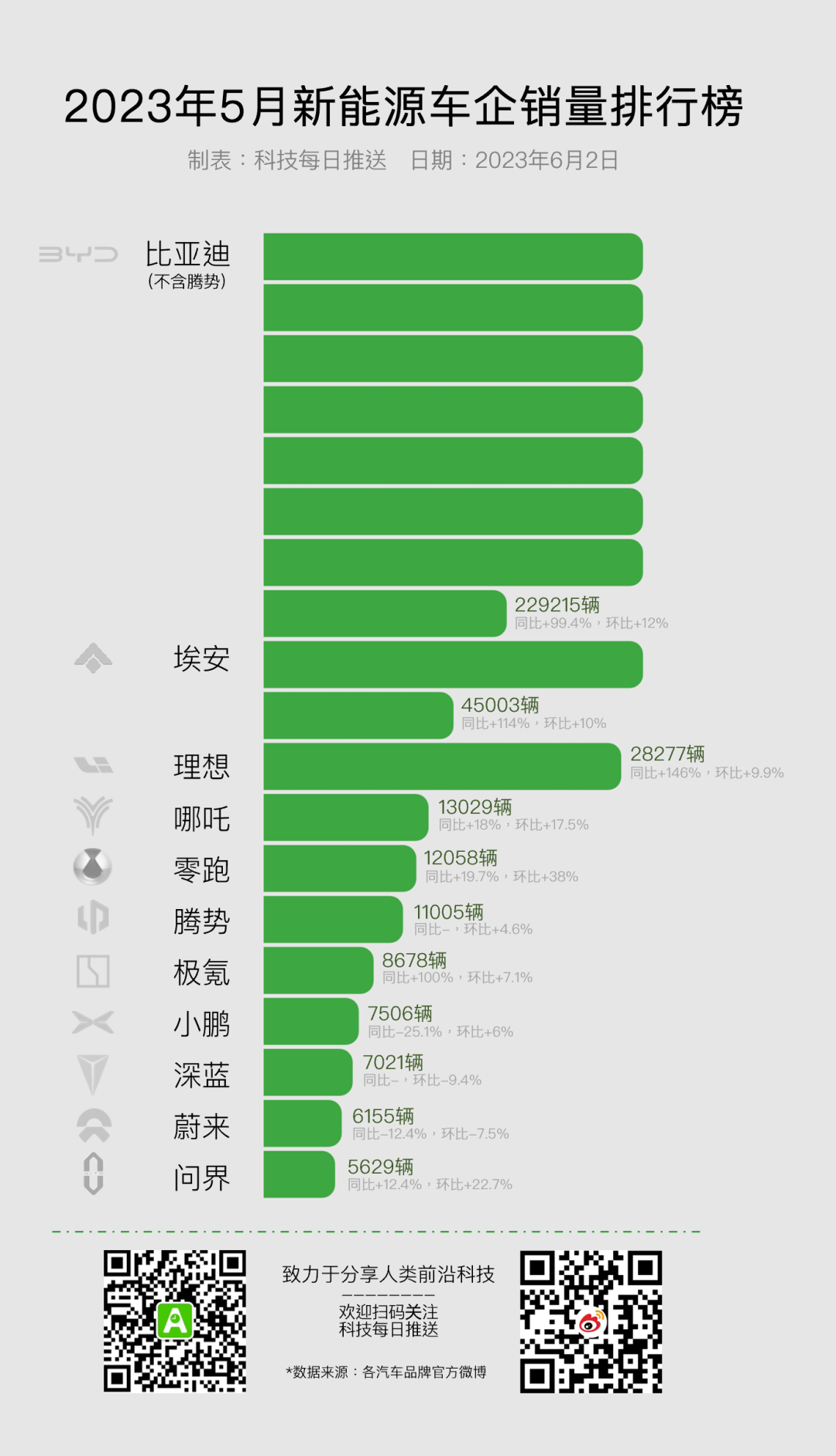 首先,比亚迪还是那个王者。据公开数据,其5月交付量为240220辆,再创新高。其中乘用车销售239092辆,同比增长109.4%。