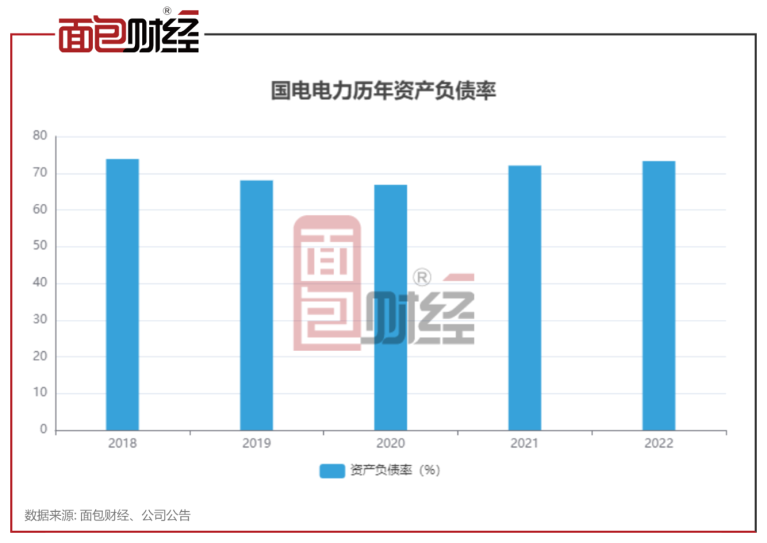 伴随资本性支出增长,国电电力的资产负债率有所上升,2022年末上升至约73.29%,相较2020年末上升超过6个百分点。