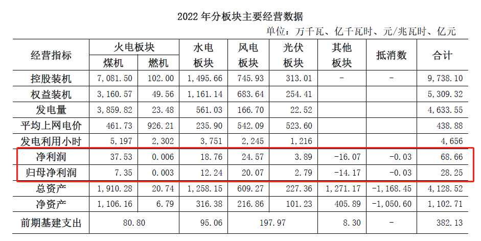 2022年,国电电力水电板块的发电利用小时数有所下降,由2021年3934小时下降至当年的3751小时。同期,公司水电板块的净利润从25亿元下降至18.76亿元。