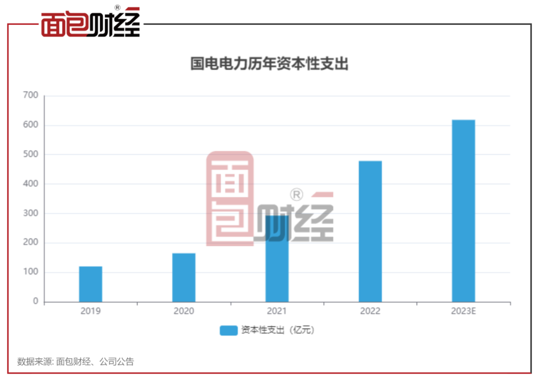 国电电力2023年计划资本性支出为618亿元,其中前期基建支出481.75亿元,当中包括207.79 亿元用于新能源项目,111.06 亿元用于水电项目。