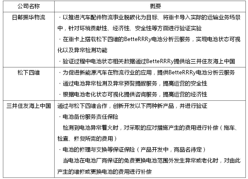 至今,松下四维向拥有大量新能源汽车且高频使用的中国大型物流企业以及新能源汽车租赁企业提供了电池分析云服务,今后将继续致力于持续扩大的新能源汽车市场,解决动力电池相关课题,赋能新能源汽车的导入及运营,积极为环境的改善贡献力量。