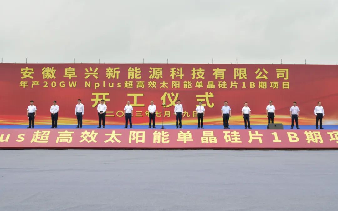 7月19日上午,安徽阜兴新能源科技有限公司年产20GW N+超高效太阳能单晶硅片1B期项目开工仪式在市经开区举行。市委书记孙正东宣布开工,市委副书记、市长刘玉杰讲话。四川和邦投资集团副总裁邓崇进,阜兴新能源科技有限公司董事长佟兴雪,市领导王波、胡明文、黄琦、刘玉建、吴开义,市政府秘书长孙存坤出席。