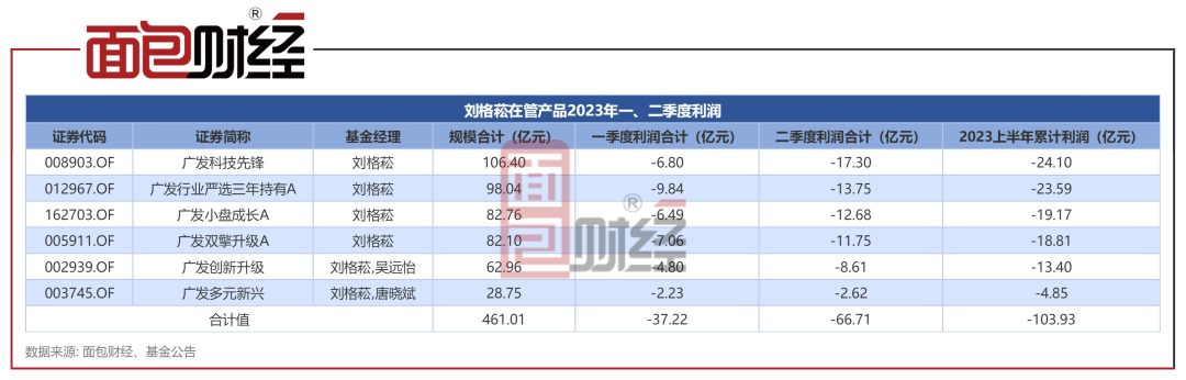 伴随净值的回撤,刘格菘在管产品二季度累计亏损66.7亿元,加上一季度亏损的37.2亿元,上半年累计亏损超百亿。