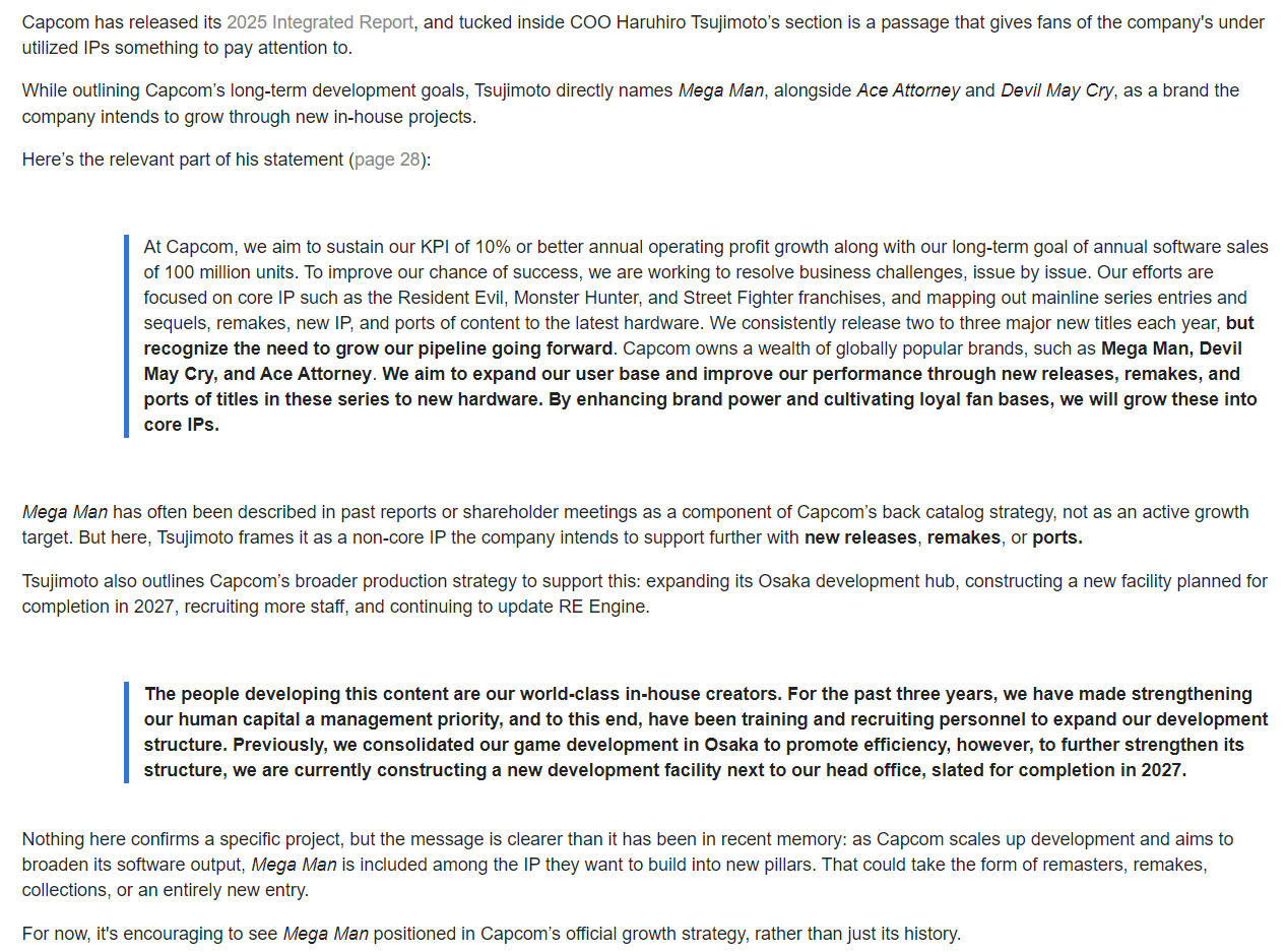 卡普空在2025年度综合报告中宣布,计划通过推出新作、重制及移植项目,将《鬼泣》《洛克人》《逆转裁判》系列发展成核心IP!