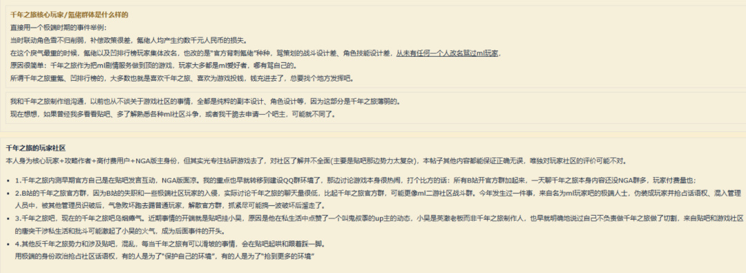 但在23年上线后运营一年多的时间里,《千年之旅》在文案、美术之外的部分却饱受诟病,多次引发玩家的不满。后续这一产品也曾深陷到二游圈闹得沸沸扬扬的“ML议题”中心,英澈老板吴浩宇,常被玩家们称作“小吴/牢吴”,也经常在QQ群、B站个人号上与玩家交流,其发言曾在各大二游主流讨论平台上引发过议论。
