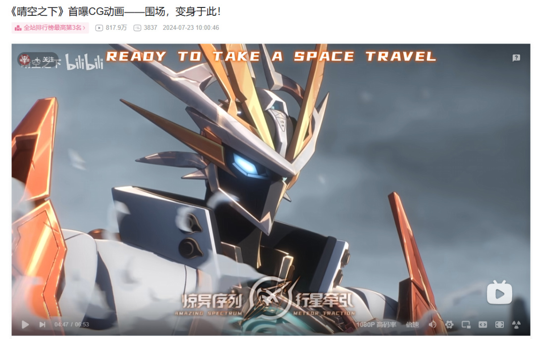 在《千年之旅》1.0逐步走向关服期间,英澈网络的另一款特摄题材的战棋手游《晴空之下》也终于是成功曝光了,值得一提的是,作为吴浩宇顶着亏本压力再冲一把的决定,《晴空之下》在首曝时就有着不俗的关注,首支CG在B站有八百多万的播放量。