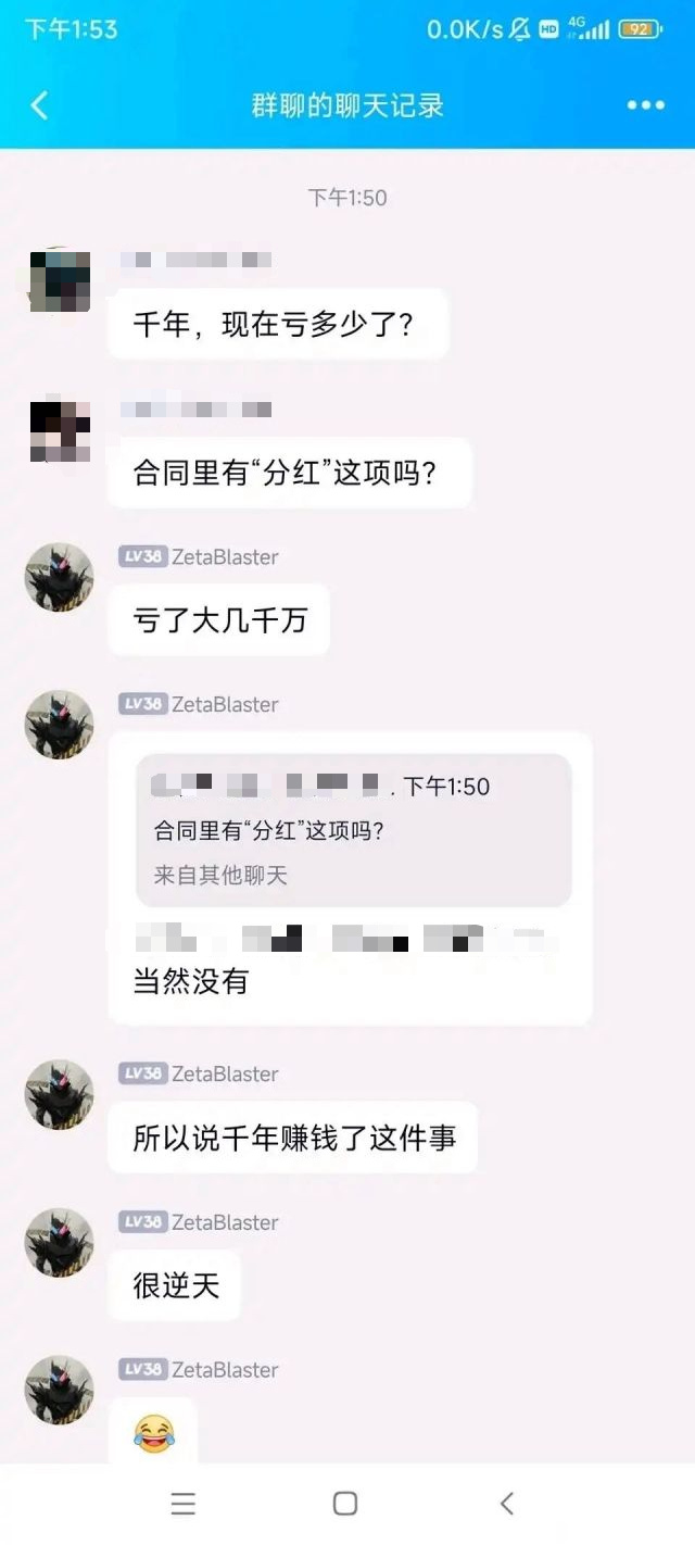 (图中的ZetaBlaster即吴浩宇网名,他曾在群聊中表示千年亏了几千万)