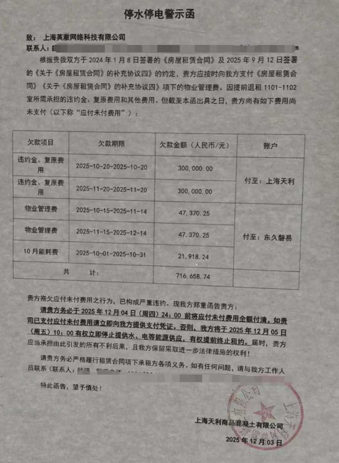 最近,关于上海英澈网络的房租,物业欠款的消息在互联网上开始流传,根据曝光图片所示,英澈网络已经欠缴了今年十月至12月的物业管理费、能耗费,以及因提前退租的违约金等相关费用,总数额约71万。