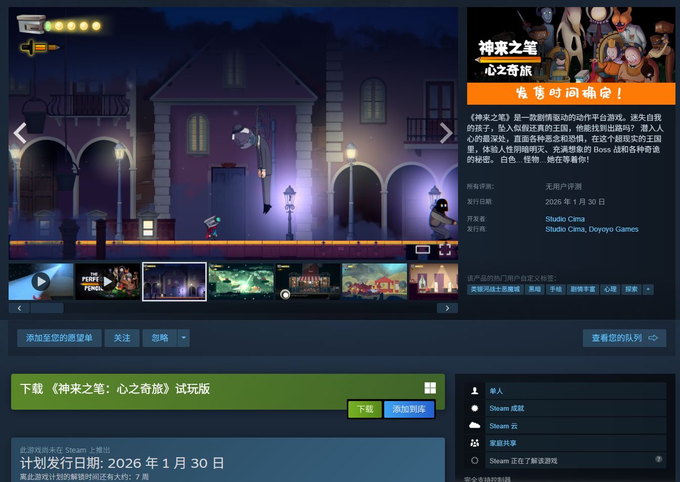 游戏现已开放Demo试玩(约2小时体验时长),将于2026年1月29日正式发售。有了Demo,小伙夫自然下载试玩看看。