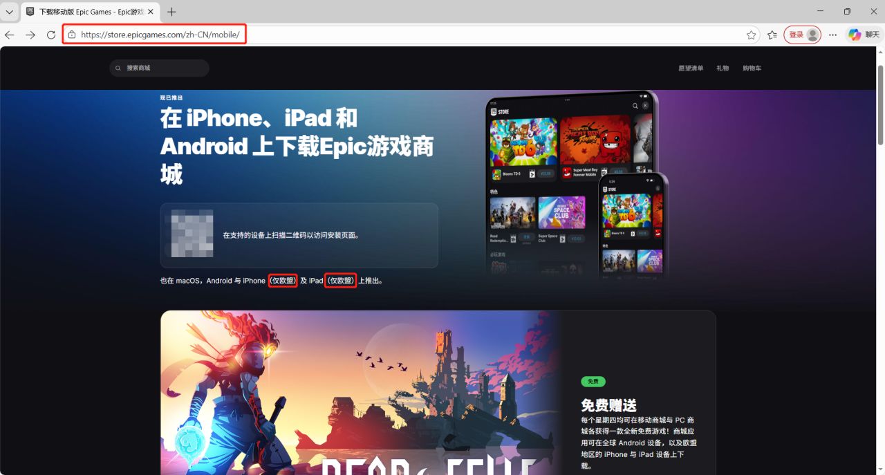5.EPIC的APP下载链接:EPIC移动端游戏商城APP