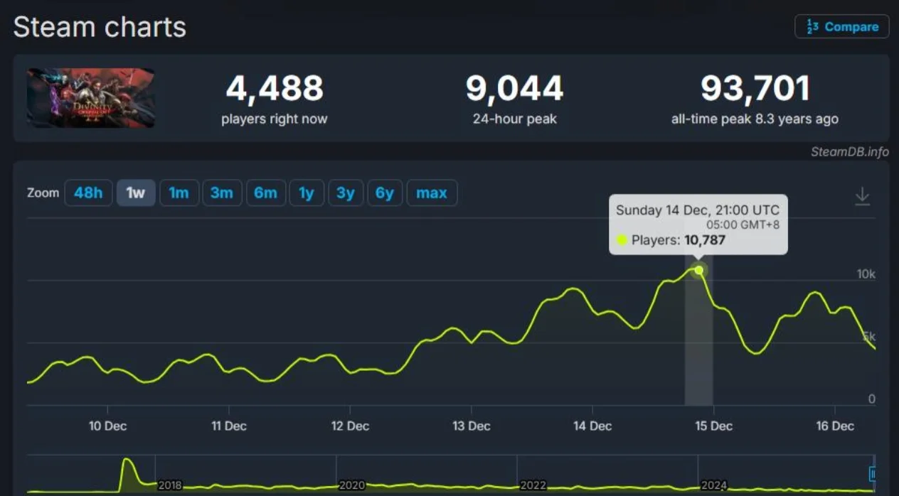 拉瑞安工作室在TGA 2025公布《神界》新作后,其经典作品《神界:原罪2 终极版》迎来玩家回流热潮。SteamDB数据显示,该游戏同时在线人数从TGA前的不足5000人强势突破10000人大关,最高达到10898人,单日峰值涨幅达63%。