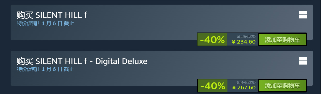 《寂静岭f》迎来新史低 6 折,标准版售价¥234.6
