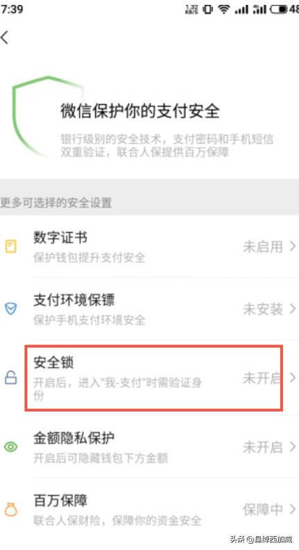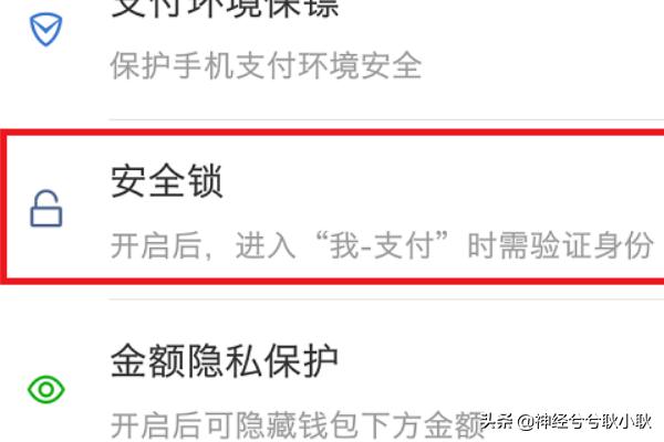 4、在安全保障这个界面中,我们可以看到它有列举了很多帮助保护我们的设置,而我们要找的钱包手势密码也是其中的一个分类【安全锁】名下的。所以,我们点击进入【安全锁】进行设置。