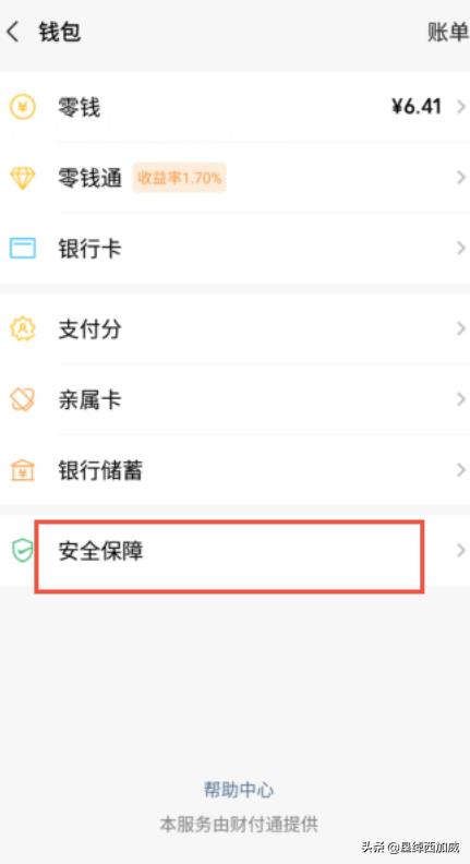 4、进入钱包后,点击“安全保障”,如下图所示。