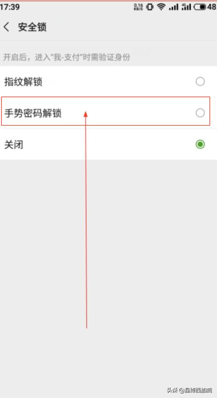 5、进入到安全锁的设置界面中,我们可以看到现在它是处于关闭状态的。我们可以选择启用指纹或者手势密码来解锁。在这里,我们选择点击【手势密码解锁】。